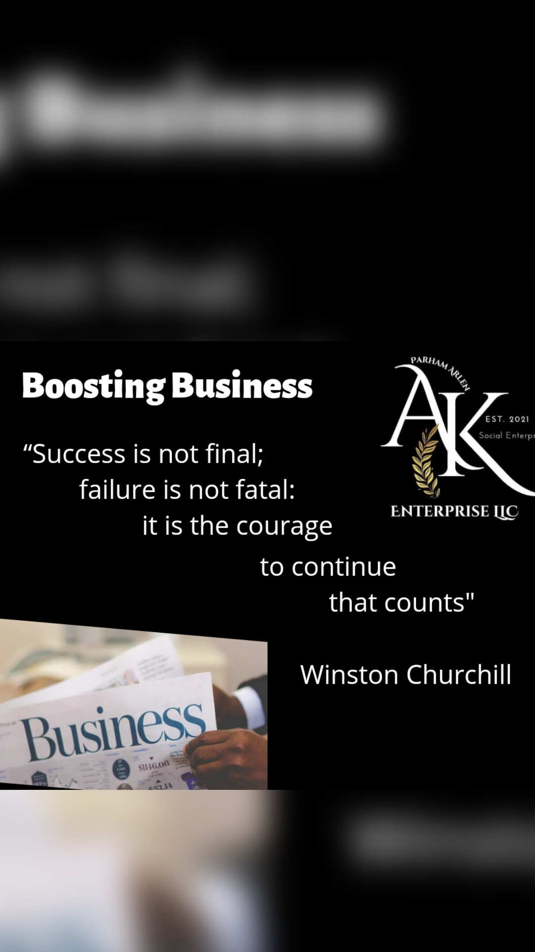 Boosting Business “Success is not final; failure is not fatal: it is the courage to continue that counts.” – Winston Churchill #winstonchurchill #motivational #inspiration #lifeprinciples #spirited #pastorakparham #arlenparhan #parhamakenterprisellc